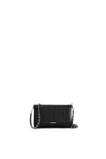 Pochette effetto laminato in rete e strass. tracolla con catena infilatura removibile. chiusura con calamita.