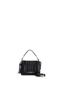 Pochette in materiale morbido plissettato con manico a treccia patch porta placchetta personalizzata sul quadrante anteriore e pendente in corda con fili colorati dotato di tracolla optional.
