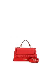 Pochette in similpelle da portare a tracolla dal gusto romantico con pattina rifinita con merletto in pizzo laserato.
