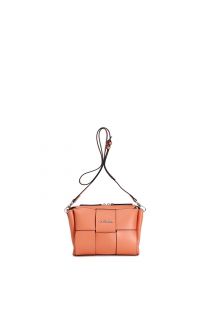Pochette sfoderata con intreccio con fasce larghe chiusura con zip in cima e tracolla regolabile.