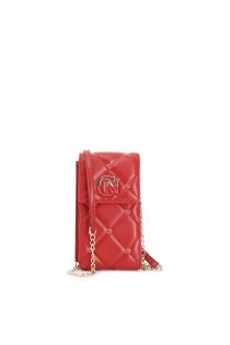 portacellulare con pattina con applicazone di rivetti colorati e logo bicolore rosso