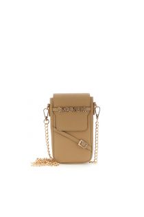 portacellulare effetto pelle con pattina, lettering e fibbia taupe