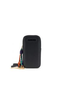 Portacellulare con zip effetto saffiano con logo in tinta e charms multicolor. tracollina staccabile in catena con spallaccio.