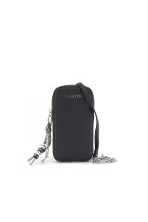 portacellulare in effetto pelle con tiralampo charm nero