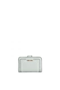 portafoglio con applicazione di mini rivetti bicolore, logo in metallo salvia