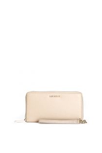 portafoglio donna in pelle conzip e manigliotto staccabile cipria