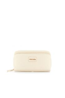 Portafoglio effetto pelle con doppia zip stampa all over e patch con lettering in metallo.