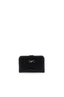 Portafoglio effetto pelle con lavorazione patchwork e logo in metallo vano portaspiccioli con zip.