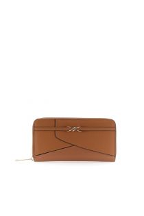 Portafoglio effetto pelle chiuso con zip con lavorazione patchwork e logo in metallo.