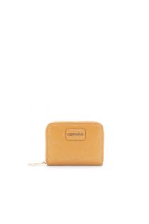 Portafoglio effetto pelle con zip stampa all over e patch con lettering in metallo.