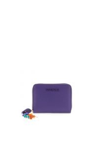 Portafoglio con zip effetto saffiano con logo in tinta e charms multicolor.