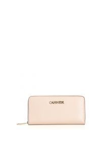 Portafoglio grande zip around in materiale liscio e lettering in metallo.