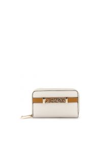 portafoglio medio con doppia zip effetto pelle granoso panna/cuoio