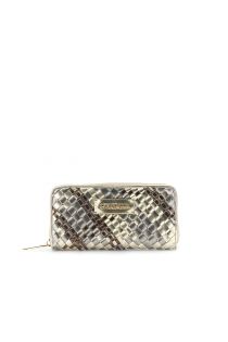 portafoglio zip round intrecciato metallizzato multicolor bronzo/platino