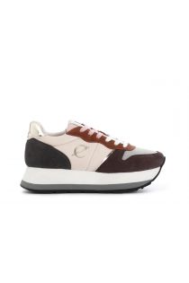 Sneakers da donna allacciate in pelle scamosciata e tessuto. logo argentato laterale con monogramma cafènoir. altezza suola 30 mm. fussbett interno.