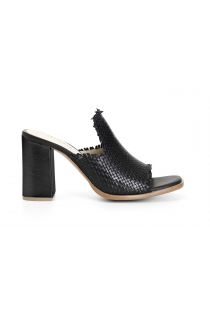 Sabot in pelle intrecciata. fodera e soletto sono in pelle. tacco grosso alto 9 cm.