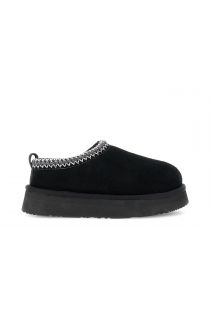 Sabot in pelle scamosciata con ricamo decorativo fodera e soletto in pelliccia sintetica. calda comfy e originale. suola alta 2 cm per un tocco urban.