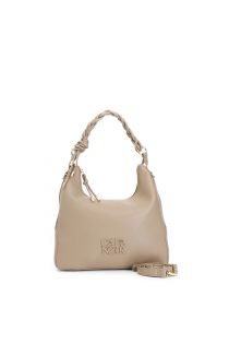 sacca con manico intrecciato e logo rettangolare tono su tono tortora