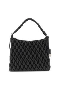 Sacca effetto nappa con lavorazione goffrata dall'aspetto trapuntato. manico a treccia regolabile e charm con logo in metallo. capiente pratica e dallo stile deciso.