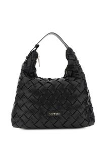 sacca effetto nappa intrecciata con lettering in metallo nero