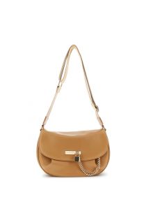 sacca effetto pelle accessorio in metallo con lucchetto e catena nocciola