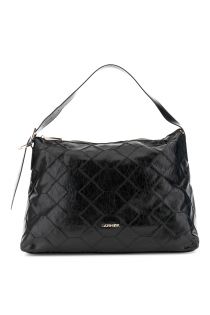 Sacca morbida in similpelle effetto pelle metallizzato con ricamo geometrico fronte/retro. manico regolabile con fibbia tracolla removibile e logo in metallo.