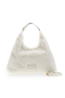 sacca in pelliccia sintetica con spallaccio e logo bianco
