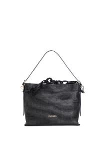sacca in rafia con fibbie metalliche e catena morbida nero