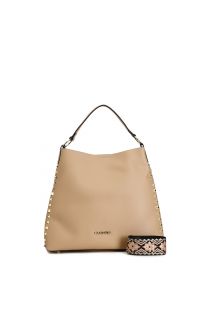 sacca morbida con file di borchie sfaccettate e manico singolo nocciola