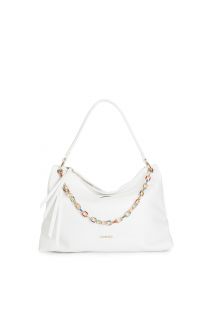 sacca morbida con tasca sul davanti e catena smaltata multicolor bianco
