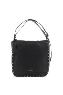 Sacca morbida in similpelle dall'effetto vissuto e sfumato con bordi decorati da rivetti. logo in metallo e tracolla regolabile per uno stile casual e grintoso.