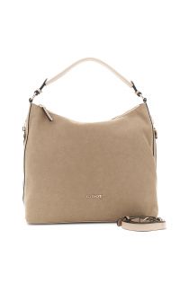 Sacca morbida in effetto suede con zip charm e lettering in metallo. tracolla removibile e look raffinato per outfit quotidiani dal tocco boho-chic.