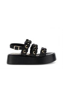 Sandali a 3 fasce in nappa con occhielli e infilatura perfetti per uno stile deciso. fodera e soletto in pelle piattaforma alta 5 cm per comfort e slancio. ideale per look estivi trendy e grintosi.
