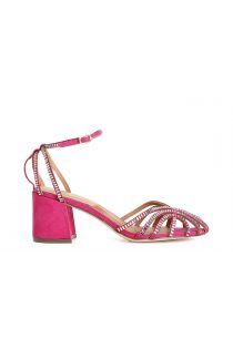 sandali a gabbia laccio alla caviglia in microfibra e strass fuxia