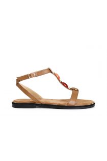 Sandali a "t" in pelle con pietre a decoro. fodera e soletto sono in pelle. calzatura dalla forma leggermente stondata. il tacco è di 2.5 cm.
