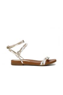Sandali alla schiava con intreccio bicolor bianco e laminato
