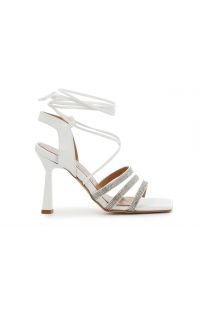 Sandali alla schiava con punta squadrata tacco 115 mm, microstrass su listini davanti, soletto e fodera in pelle.