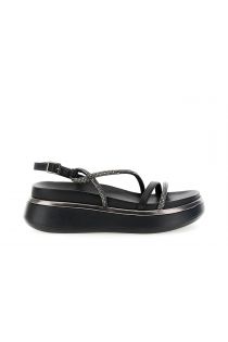 Sandali con listini sottili impreziositi da strass cinturino regolabile e fondo platform leggero con profilo metallico. plateau alto 3 cm e suola alta 4 cm. un modello comodo e brillante perfetto per look estivi dall’eleganza minimal.