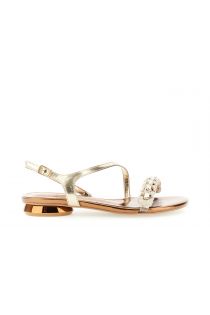 sandali asimmetrici effetto pelle laminata con strass oro