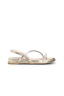 Sandali asimmetrici multistrass. calzatura comoda con fussbett. il soletto è in pelle.