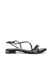 Sandali asimmetrici con strass termosaldati. fodera e soletto sono in pelle. il tacco è di 1.6 cm.