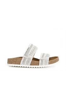 sandali bassi modello ciabatta in sughero e strass degradè multi bianco