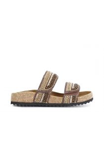 sandali bassi modello ciabatta in sughero e strass degradè multi marrone