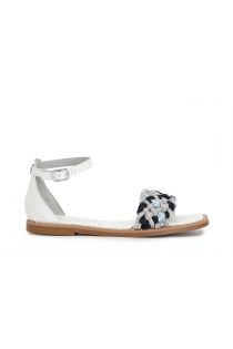 Sandali chiusi dietro con fascia di strass e rafia intrecciata , suola in cuoio e guardolo con borchiette. Soletto e fodera in pelle.