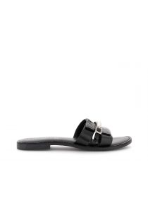 sandali ciabatta flat in pelle con fibbia gioiello nero