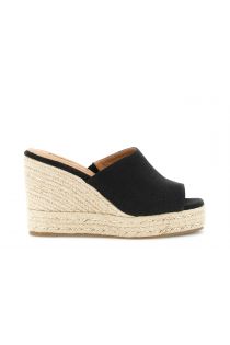 sandali ciabatta in canvas su fondo zeppa nero