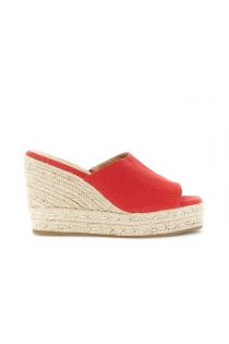 sandali ciabatta in canvas su fondo zeppa rosso