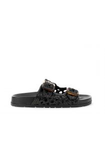 Sandali ciabatta dal carattere deciso con doppia fascia in pelle intrecciata e fibbie regolabili. plantare sagomato soletto in pelle e suola flessibile alta 2.5 cm garantiscono comfort e stabilità. calzatura perfetta per look casual dal mood forte e contemporaneo.