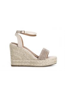 sandali con fasce strass su zeppa corda cipria