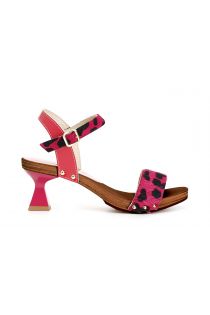 sandali con fascia in cavallino maculato e tacco a clessidra fuxia